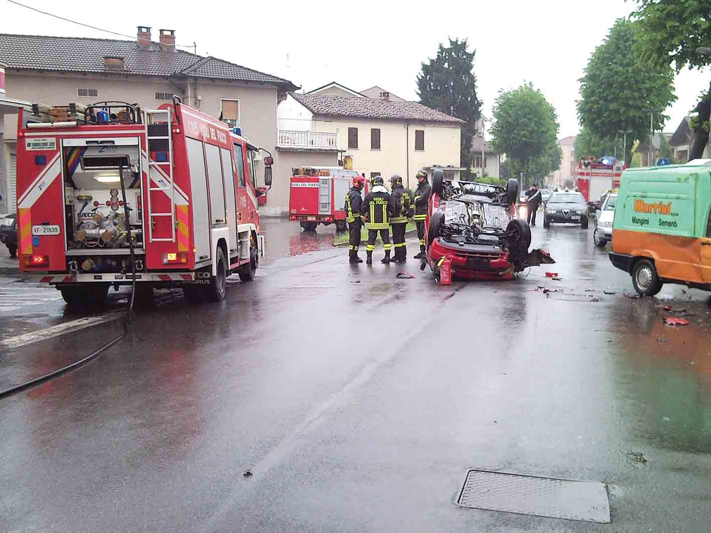 Nella tarda mattinata di domenica, N.P. stava salendo, in compagnia della moglie, sulla sua Golf, parcheggiata vicino alla rotonda, quando è giunto a forte velocità, alla guida della propria Fiat Palio, N.K., investendo in pieno il fratello ed andando ad urtare sia la Golf del parente che un Fiorino parcheggiato poco distante.