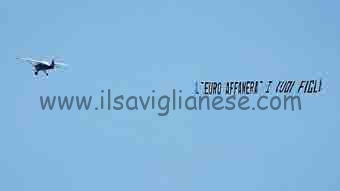 Il promotore finaziario saviglianese Giuseppe Trucco è stato di parola. Come aveva annunciato sul nostro giornale, il giorno di Ferragosto, per il terzo anno consecutivo, ha dato il via ad un’operazione aerea “anti-euro” che ha interessato le spiagge italiane. Scopriamo come e perché. Servizio a pagina 7.
