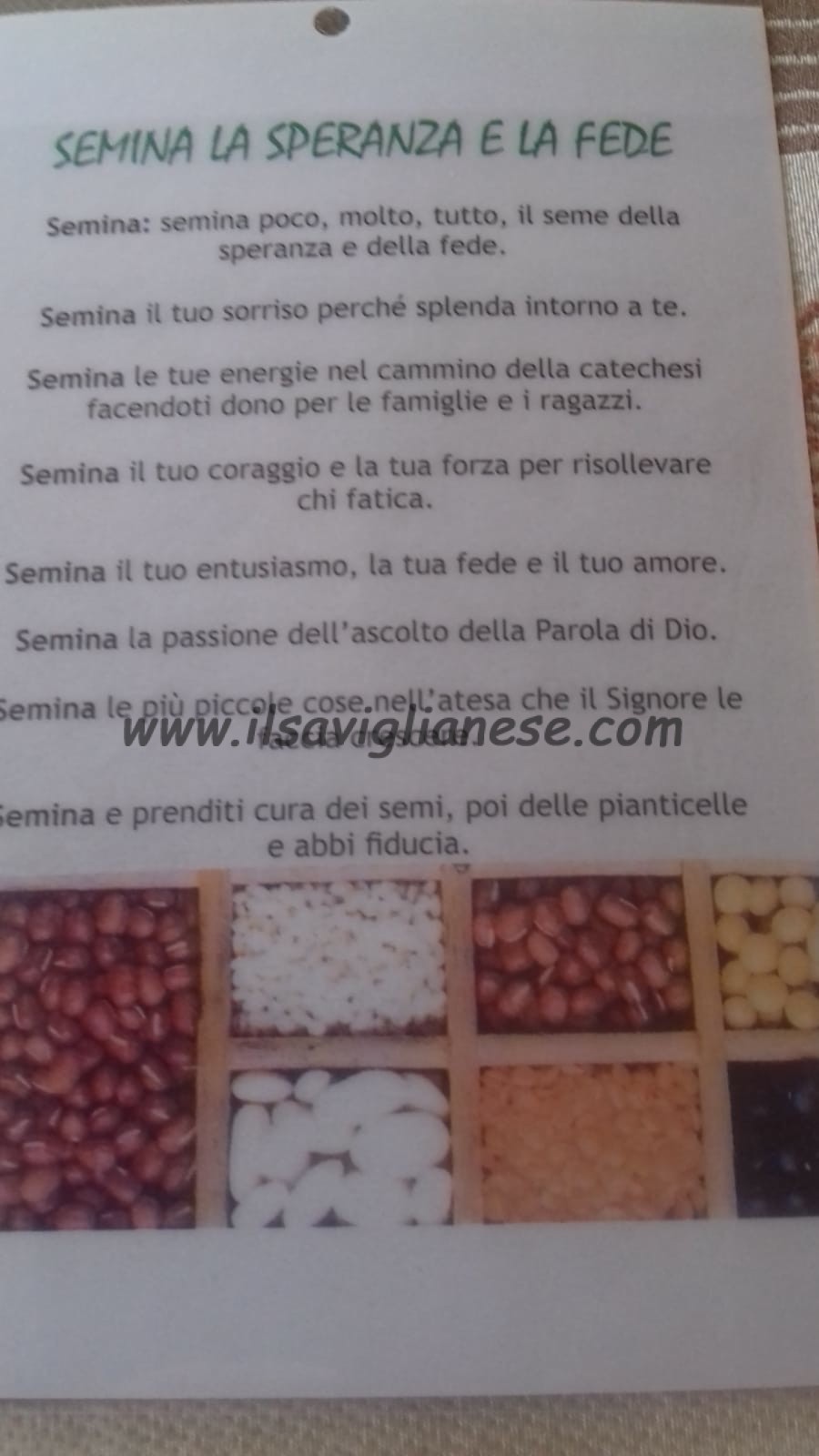 VILLANOVA SOLARO Domani, domenica 31 ottobre, alla messa verrà inaugurato l’anno catechistico e il conseguente mandato alle catechiste. Inoltre, verrà consegnato ad ogni famiglia la preghiera “Semina la speranza e la fede” insieme a un sacchetto di semi (in foto), segni questi ultimi che simboleggiano l’importanza dei genitori nella crescita fisica e spirituale dei loro figli. Tutti i particolari sul numero in edicola.