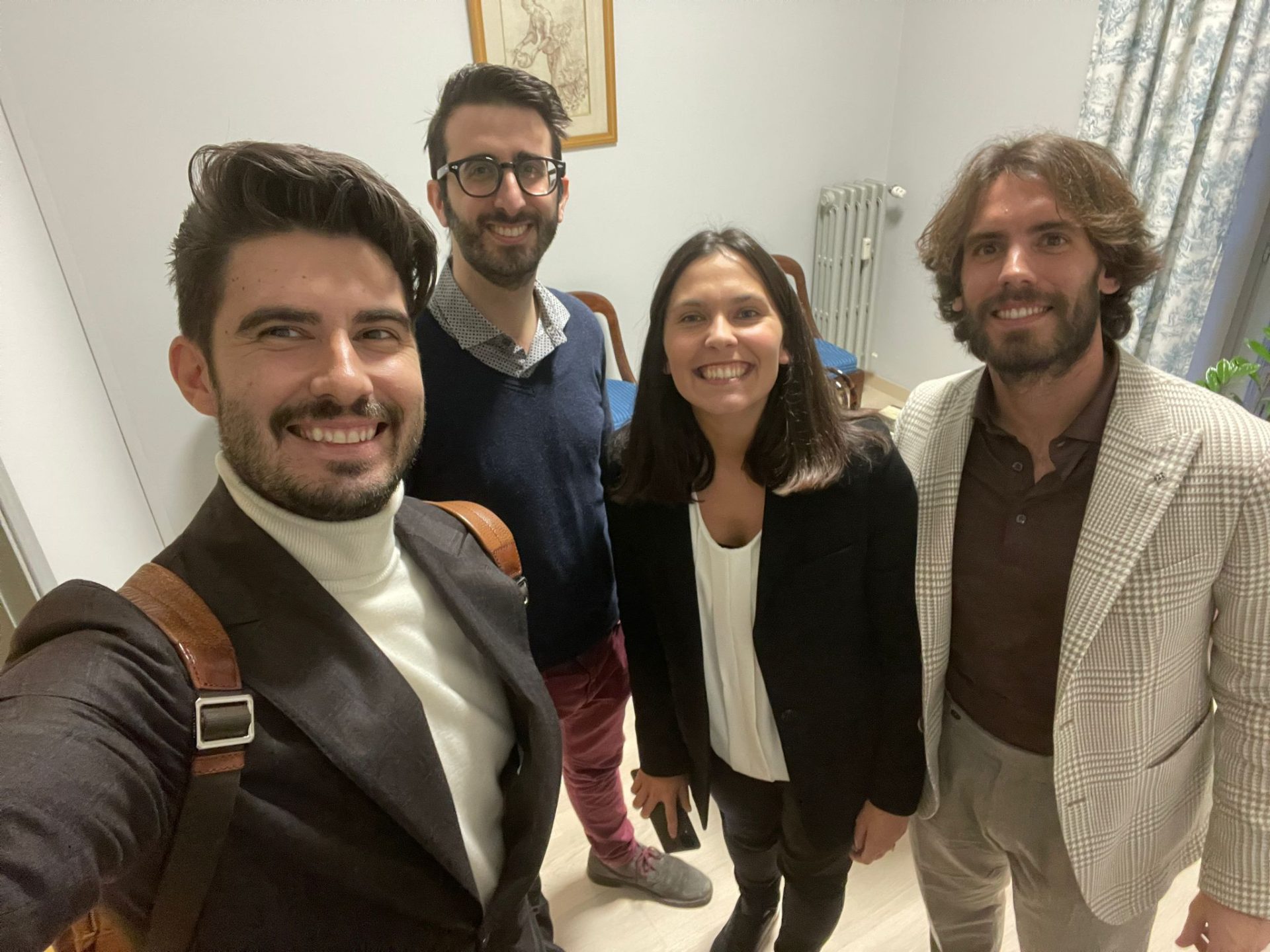 Il selfie dei fondatori di Voys dopo la costituzione della società (da sinistra a destra, Emanuele, Andrea, Eugenia e Agostino)