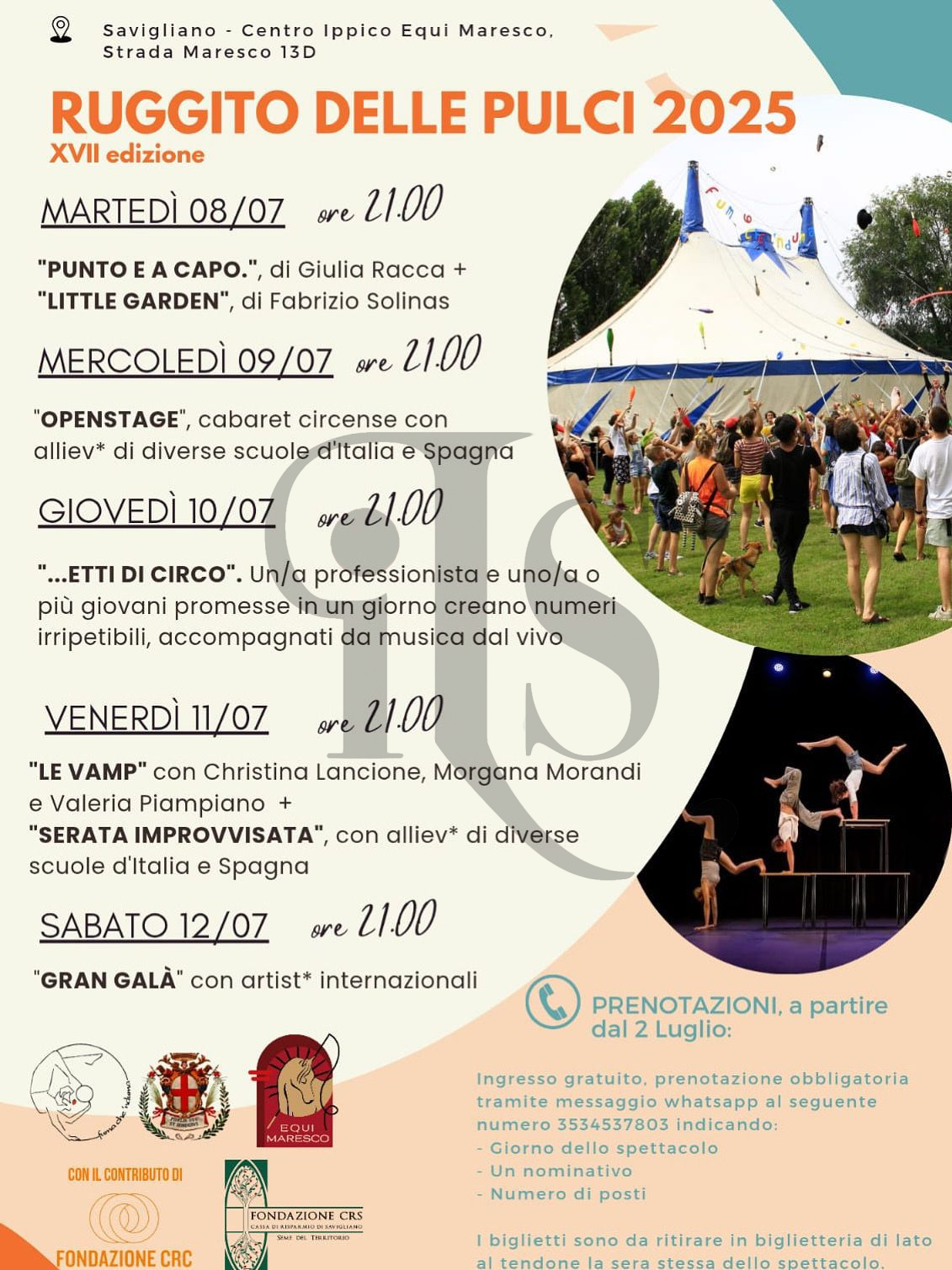 A Savigliano inizia oggi, martedì 8 luglio, in frazione Maresco, presso il Centro Ippico Equi Maresco (foto), “Il Ruggito delle Pulci” l’unico festival di circo fatto dalle nuove generazioni esistente in Italia.
