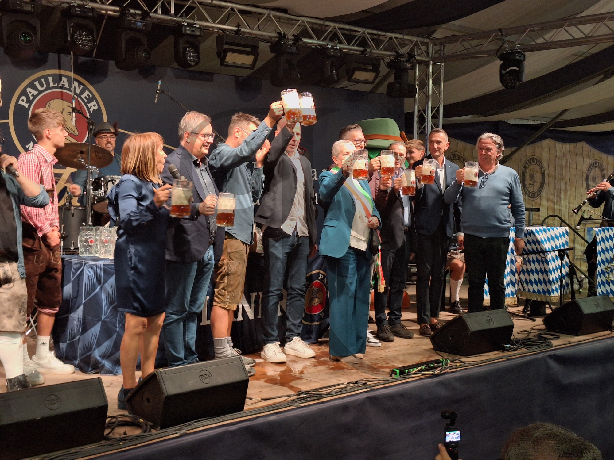 Ci sono voluti parecchi colpi di “martellone” affinché dalla prima botte dell’Oktoberfest di Cuneo sgorgasse la tanto agognata birra. Ma alla fine il fiotto è arrivato e i primi boccali sono stati serviti.